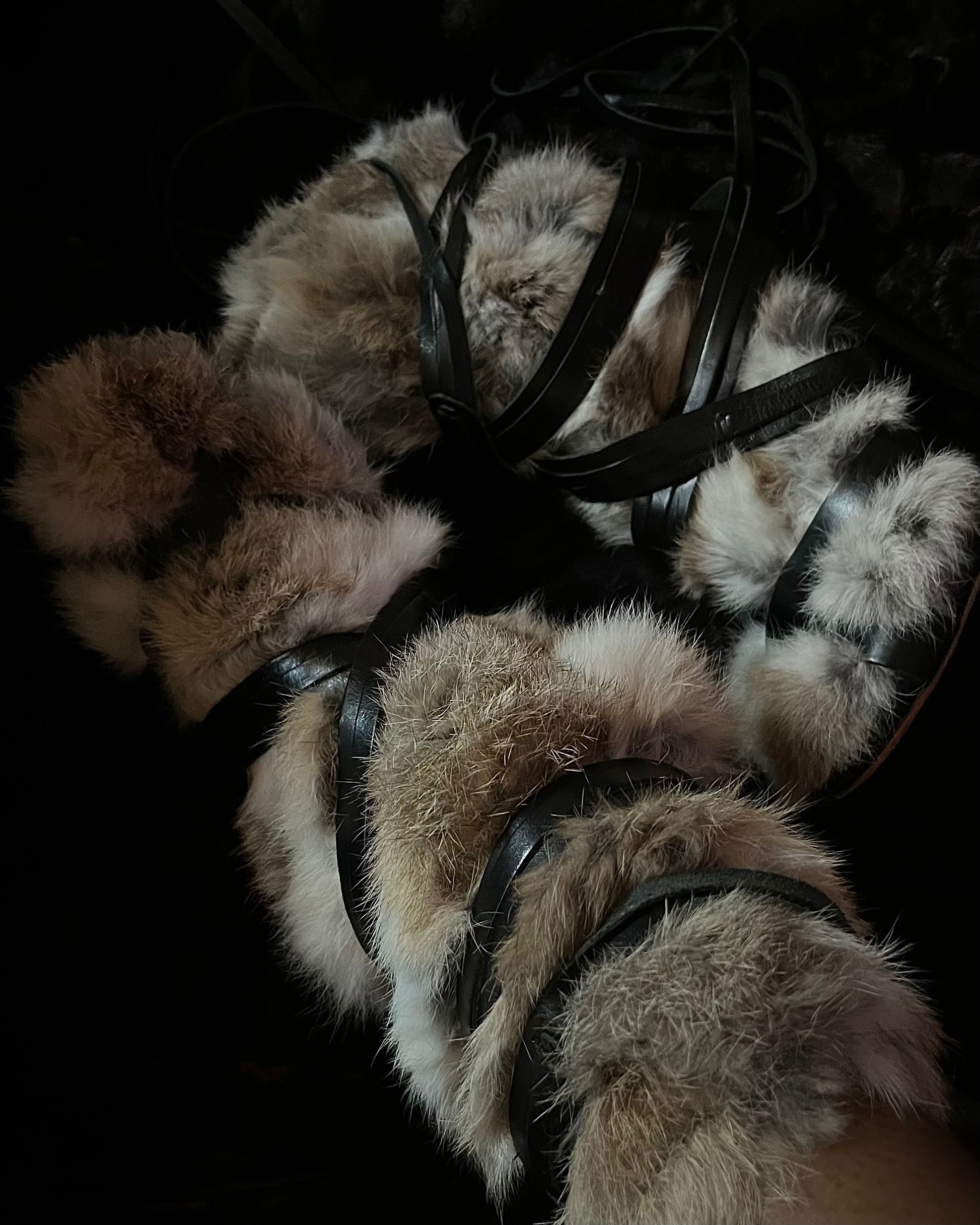 Description: Leather ankle boots with rabbit fur trim, pointed toe and leather straps. A staple design from Isabel Marant’s F/W 2014 collection.