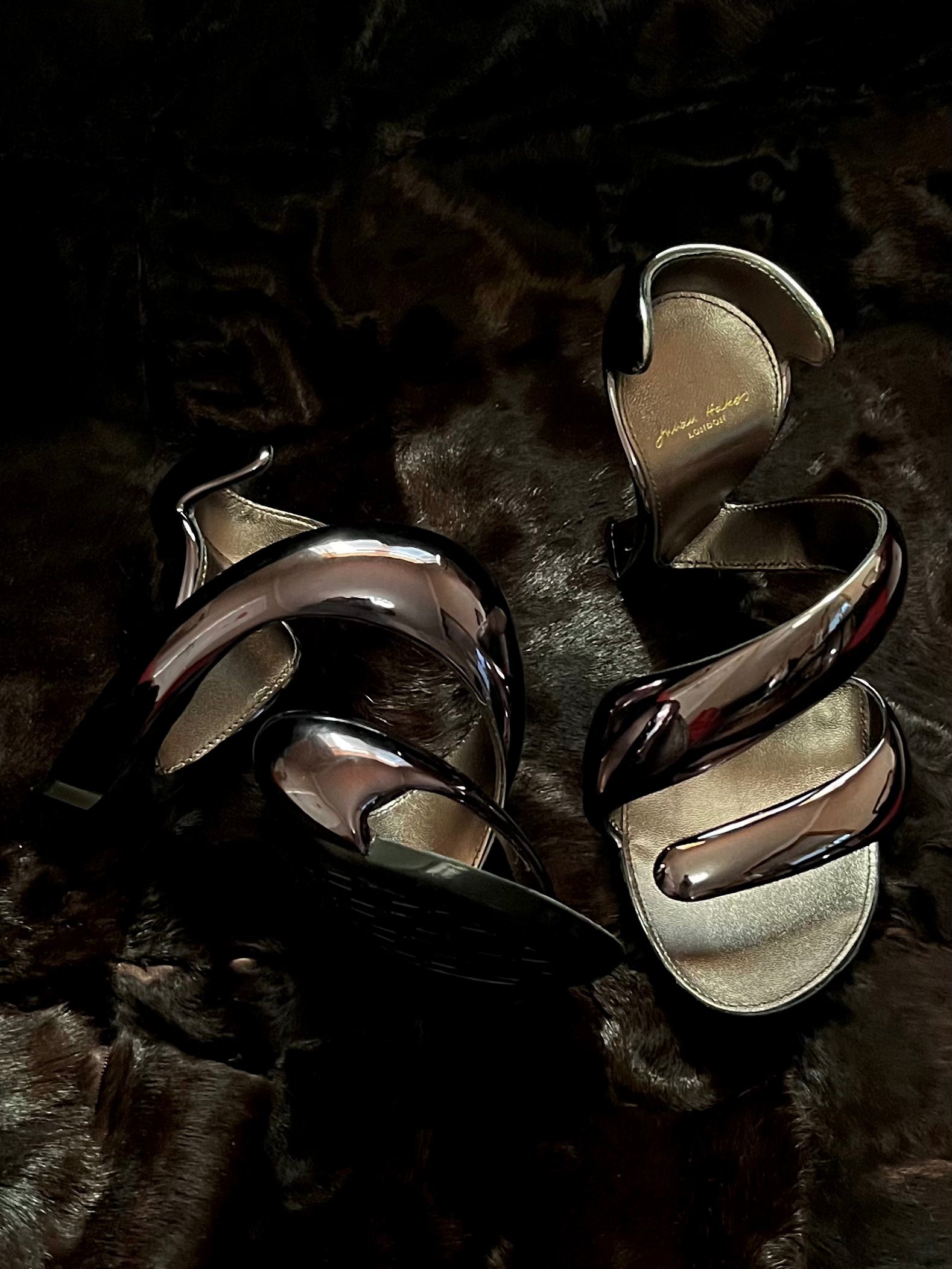 Item: Julian Hakes Mojito Metallic Sculptural Sandals